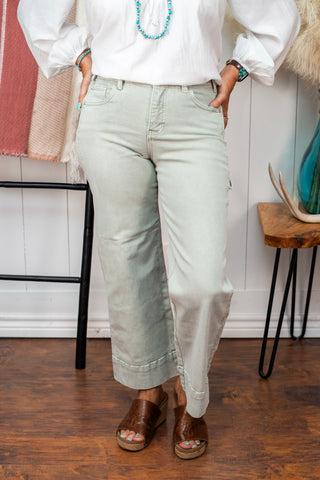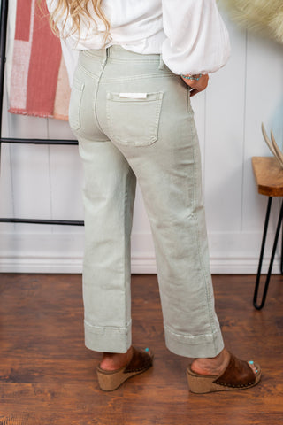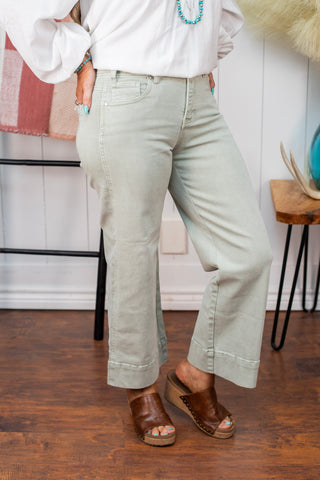 Elevate your denim collection with our Pistachio Pop Jeans. These high-rise, wide-leg crops feature powerful tummy control and the perfect amount of stretch to flatter your figure. The muted pistachio hue offers a refreshing twist on classic denim, making these 5-pocket jeans your summer style essential. Versatile enough to dress up or down, they'll quickly become your go-to for creating both casual and classy looks.