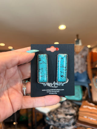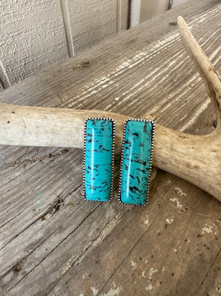 Elevate your western aesthetic with our Bar None Earrings. These statement pieces feature faux turquoise bars on sturdy posts, delivering bold cowgirl style without compromising comfort. The edgy design pairs effortlessly with both casual denim and evening attire, making them versatile additions to any jewelry collection seeking authentic western flair.