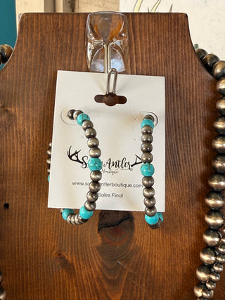 Upgrade your cowgirl style with our Pearland Earrings. These post hoop earrings feature faux turquoise and silver pearl for an authentic look without the price. Lightweight and stylish, they'll elevate any outfit for a fraction of the cost. Perfect for those who want the western jewelry look without breaking the bank.