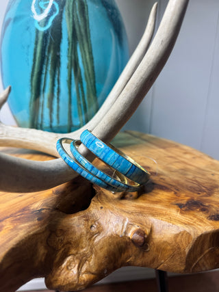 Elevate any outfit with Sierra Sky Bangles, a set of three stylish faux gold and turquoise bangles. Add a touch of glamour to your wardrobe with these fashion jewelry pieces that are perfect for arm candy lovers. Make a statement with these versatile and irresistible bangles.