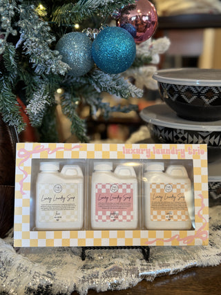 Transform your laundry routine with the Luxe Laundry Trio. Indulge in luxury laundry soap and experience the fresh scent of our top three fragrances on your linens and towels. Perfect for gifts, stocking stuffers, or pampering yourself. Elevate your laundry game with our expertly crafted product.