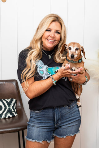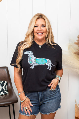 Unleash your love for dachshunds and turquoise with our Western Weenie graphic tee. The unisex fit stays true to size for a comfortable and must-have addition to your wardrobe. Show off your unique style and passion for these lovable breeds.