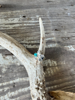 Elevate your western style with the Cowgirl Ice Ring, crafted from .925 sterling silver and adorned with dazzling cubic zirconia and authentic Kingman Sonoran turquoise stones. This chunky, wide-band statement piece delivers bold cowgirl bling that sparkles with every move. Perfect for adding a touch of rugged elegance to any outfit, it pairs beautifully with matching pieces sold separately. Treat yourself or gift her a standout accessory that captures the spirit of the Southwest with timeless shine and vibrant turquoise accents.