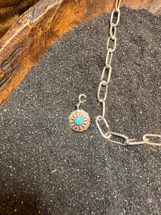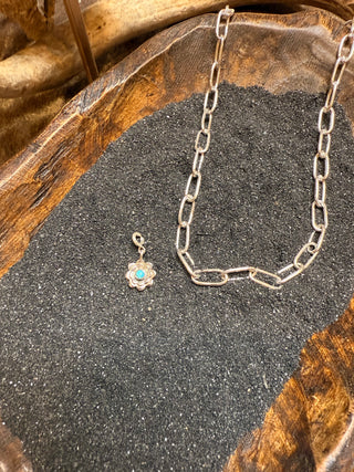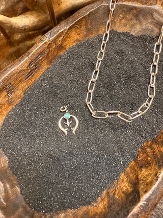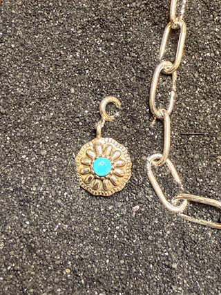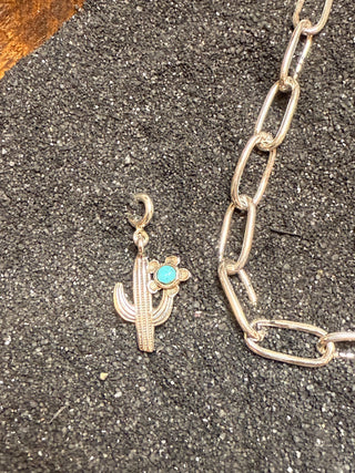 Hada Collection ~ Embrace your inner cowgirl with Desert Darling Charms, crafted from .925 sterling silver and authentic Kingman turquoise. These versatile charms are perfect for customizing your charm bracelet or designing a unique necklace that reflects your western style. Ideal as a thoughtful gift or a fun project with friends, they let you create a personalized accessory that celebrates the spirit of the desert and timeless western fashion.